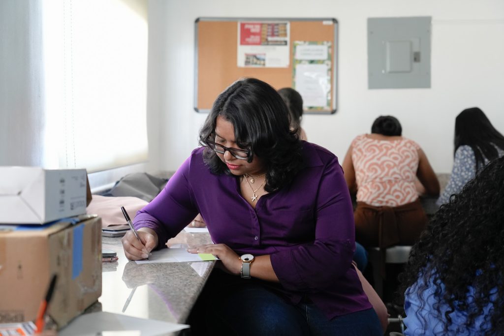 Durante la actividad se desarrolló una dinámica interactiva en la que las asistentes utilizaron pluma y papel para escribir 10 cosas que las apasionan y 10 actividades que realizan diariamente, con el objetivo de promover la reflexión sobre su propósito y desarrollo personal.